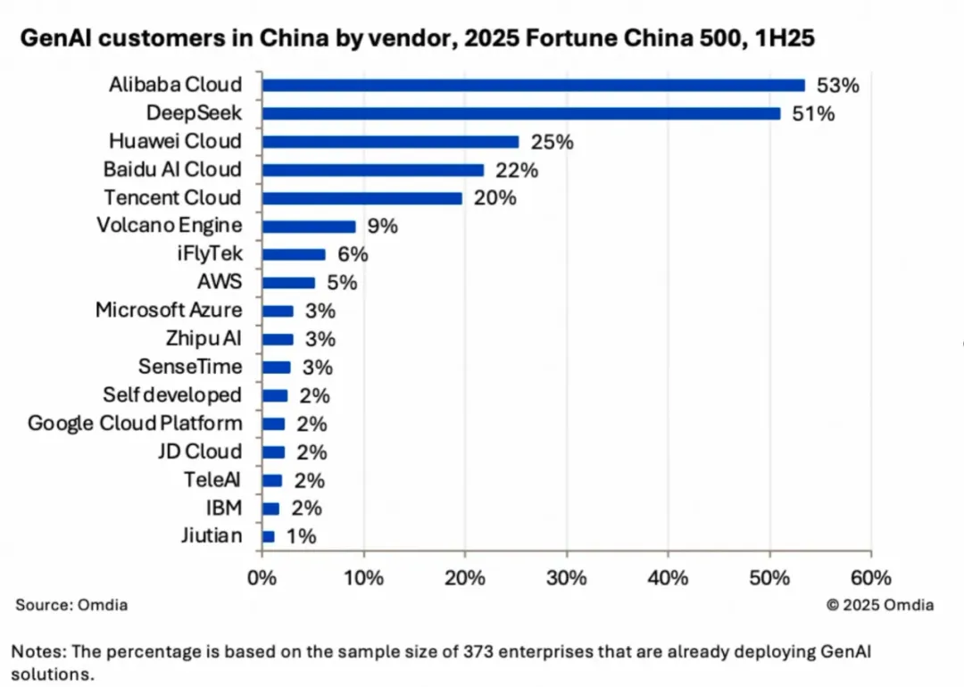 Omdia报告对国内各AI云计算和大模型渗透率的调查。