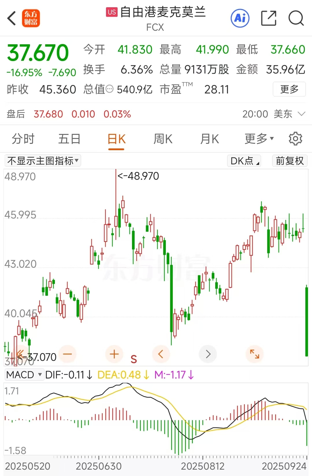 受此影响,自由港麦克莫兰9月24日跳空大跌16.95%。而嘉能可、泰克资源等竞争对手的股价则有所上涨。