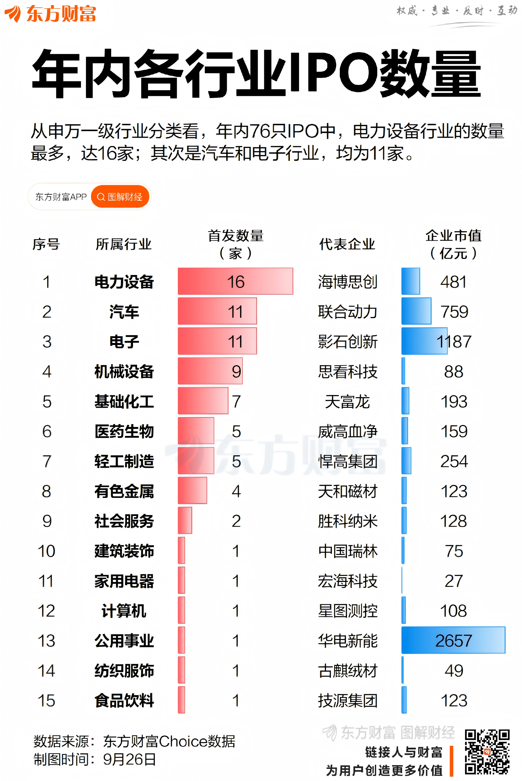 从申万一级行业看,今年上市的新股主要集中在电力设备、汽车、电子和机械设备等行业,也即市场一直提及的“高端制造”概念。数据显示,电力设备是年内新股数量最多的行业,达16只;汽车和电子行业的新股数量紧随其后,均为11只;此外,机械设备行业也相对较多,为9只。