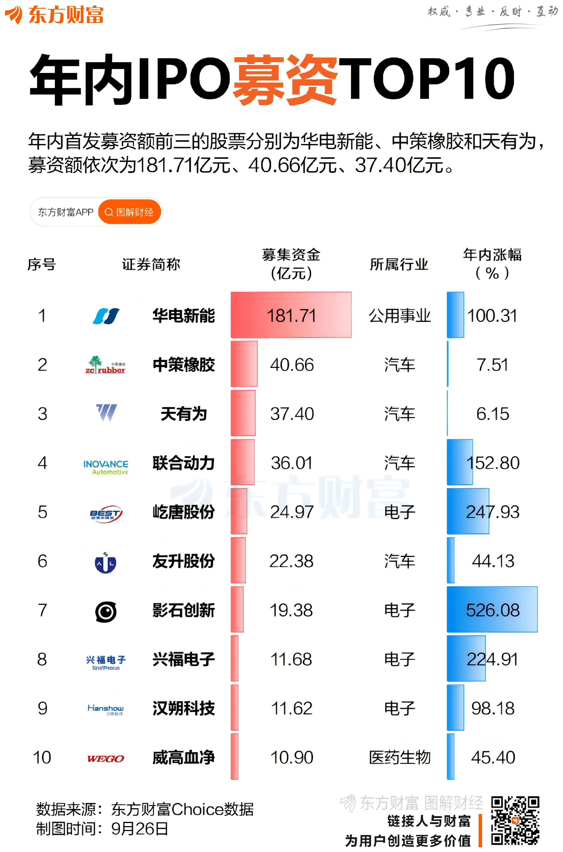 年内IPO募资额TOP10