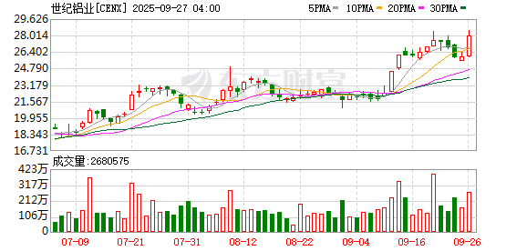 金属与采矿、汽车股涨幅居前,世纪铝业涨超7%,泛美白银、美国黄金公司、黄金资源涨超4%,Lucid、福特汽车涨超3%。加密矿企、稀土概念跌幅居前,Hut 8跌近5%,TeraWulf跌超1%。
