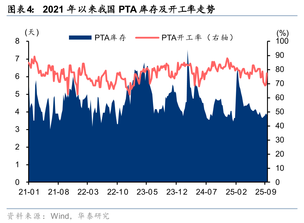 华泰证券研报称,扩产周期结束,PTA行业拐点渐显。PTA作为聚酯纤维、聚酯瓶片和聚酯薄膜的核心原料,2010年以来行业经历了两轮扩产周期,截至2025年9月,我国PTA有效产能规模增长至9135万吨,供给端快速趋于饱和导致近5年产品价差持续低位徘徊。未来两年基本无新增产能投放计划。国内“反内卷”政策以及技术更新迭代有望共同推动PTA行业供给格局优化,叠加海内外终端纺服及消费需求或将稳步提升,PTA利润有望迎来一轮显著的筑底反弹,新装置占比较高的行业头部企业有望受益。