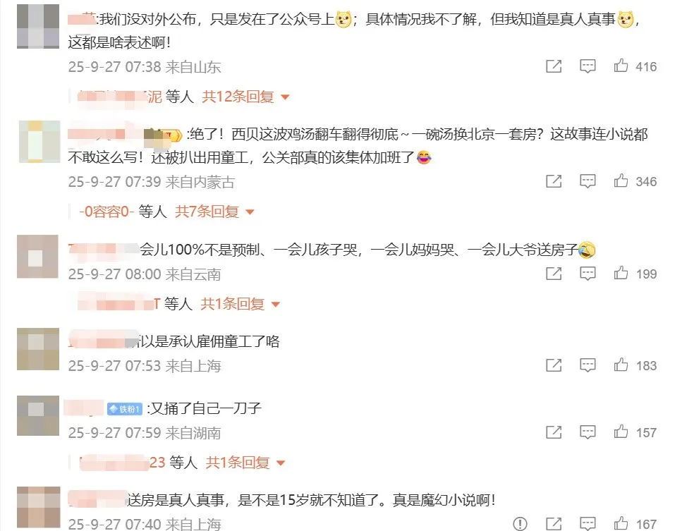 近期,有网友扒出一则西贝官方微信公众号发布的视频《我给大爷一碗汤,大爷要送我北京一套房》,内容引发大量吐槽。对此,西贝客服回应:是真人真事。