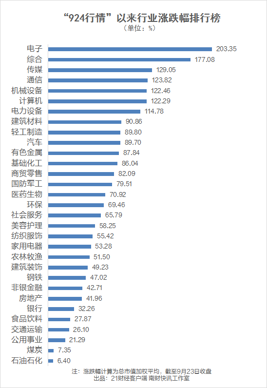 电子、传媒等七大行业涨幅超100%,石油石化垫底