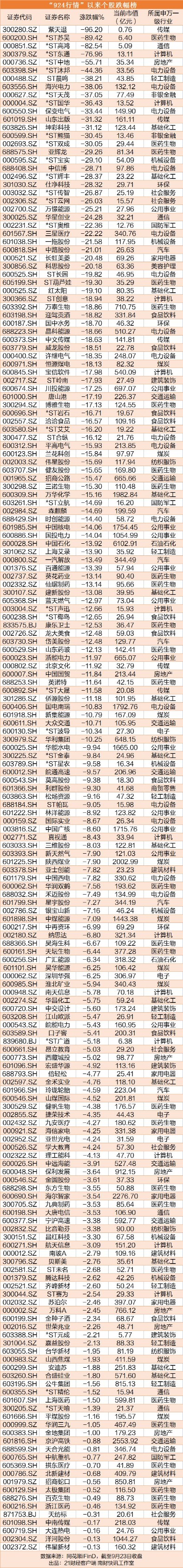 从个股表现来看,剔除“924”后上市新股后,本轮行情共有5137只个股上涨,占比超九成,1431只个股实现翻倍,38只个股涨幅超500%。其中,3只个股实现10倍以上涨幅,分别为上纬新材(1720.5%)、*ST宇顺(1133.01%)、胜宏科技(1061.66%),分别隶属基础化工、电子行业。