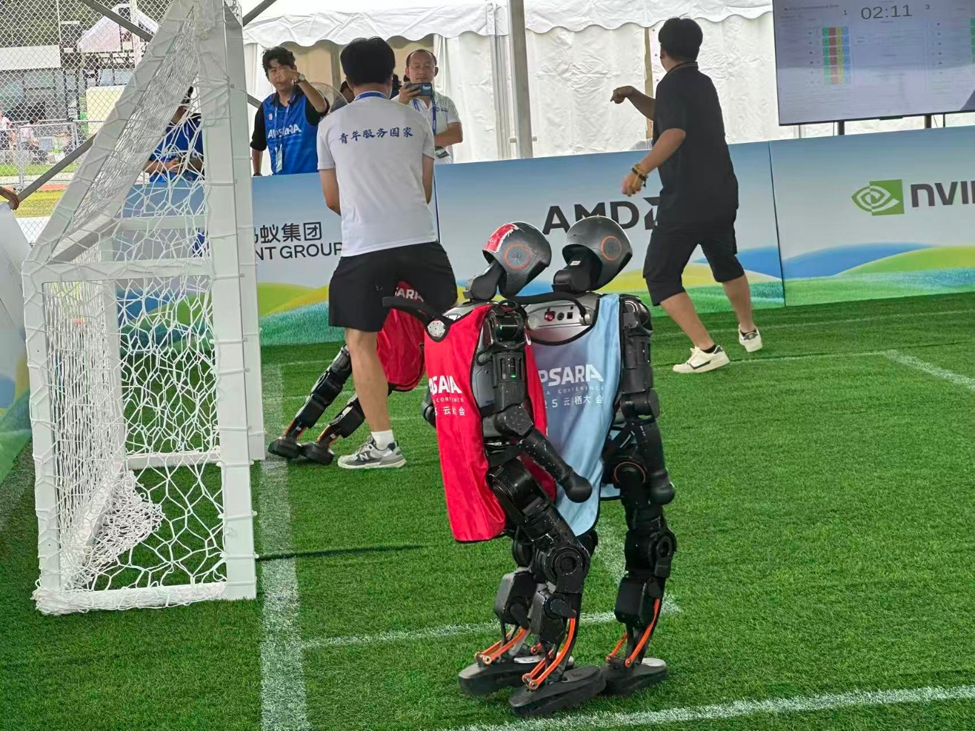 在“智能终端,未来生活”展区,多家机器人企业参展。现场还举行了机器人足球赛。
