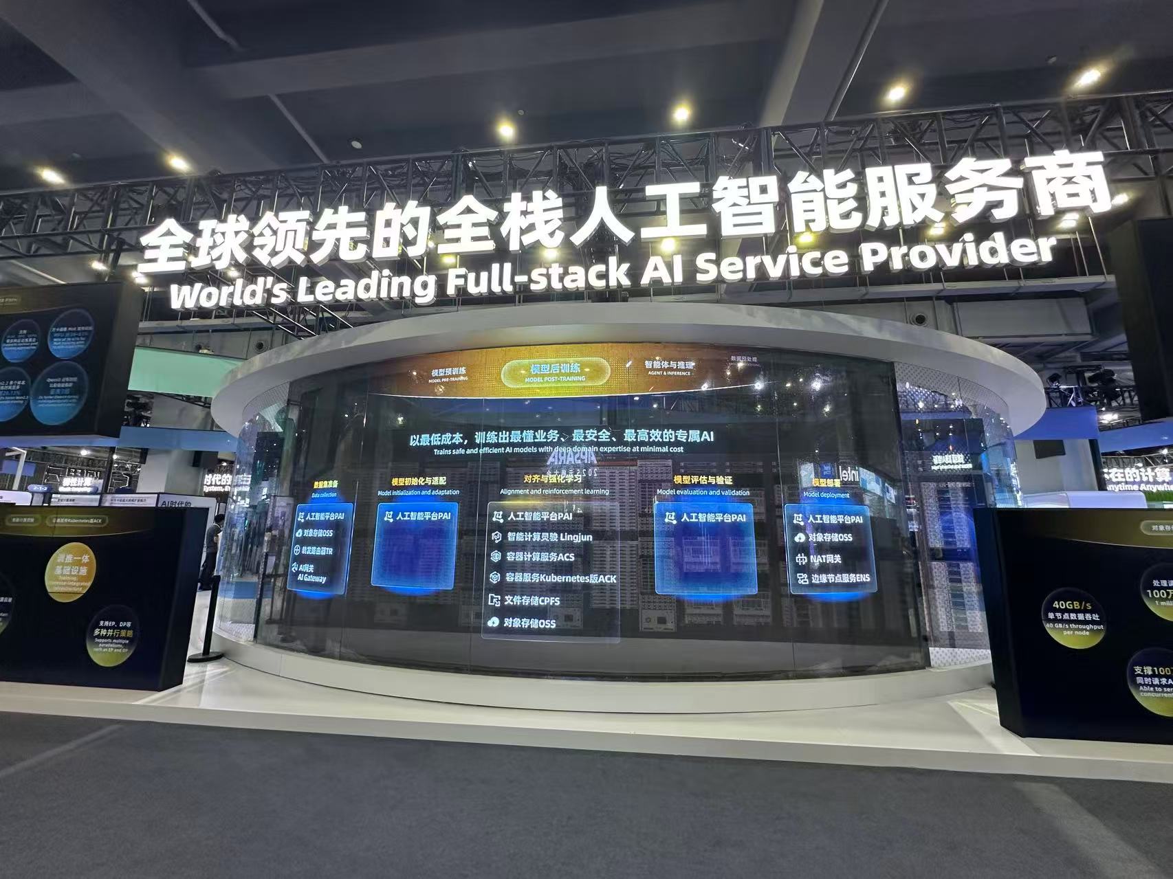 《科创板日报》注意到,在云栖大会展台上,阿里云AI基础设施齐齐登场,涵盖从底层芯片、超节点服务器、高性能网络、分布式存储、智算集群到人工智能平台、模型训练推理服务。