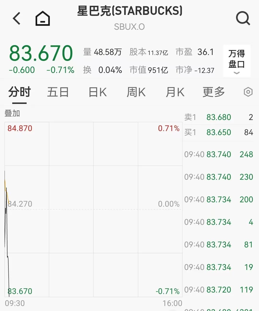 与此同时,星巴克股价自年初以来下跌近6%,而同期标普500指数上涨了约13%。