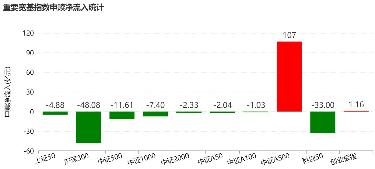 细分来看,主要宽基指数整体资金申赎统计显示,本周中证A500净流入107亿元,