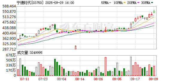 截至9月29日收盘,宁德时代A股股价报397.37元/股,涨幅达4.46%,总市值为1.83万亿元。