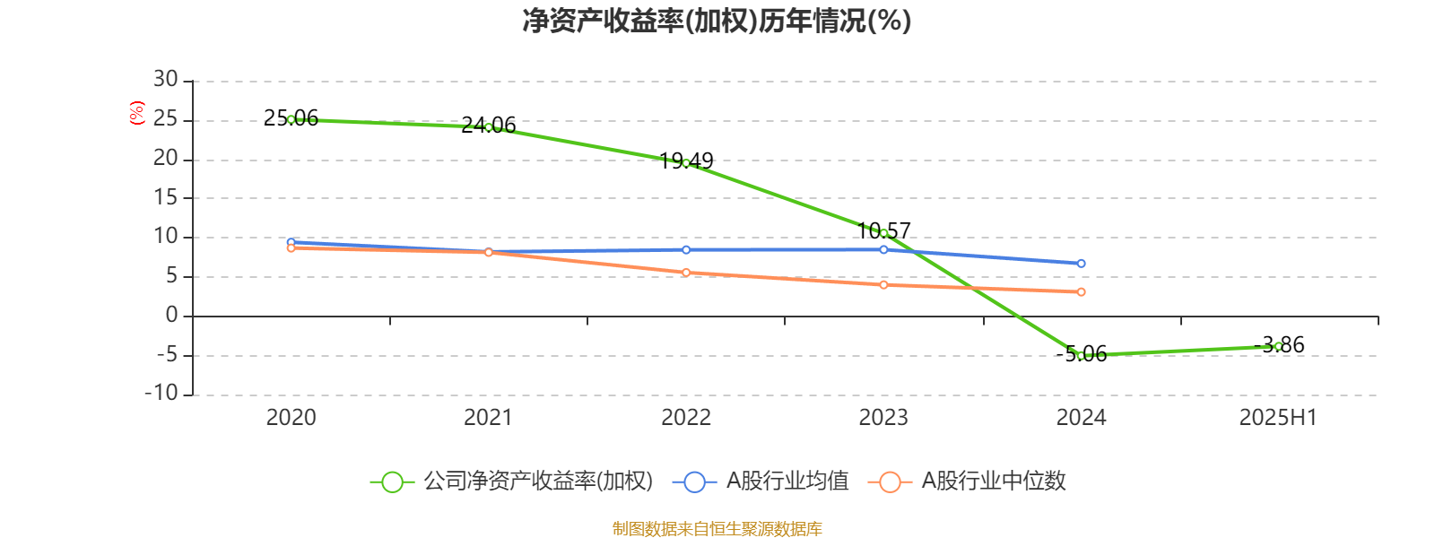 2025年上半年,公司平均净资产收益率为-3.86%,较上年同期上升0.45个百分点。