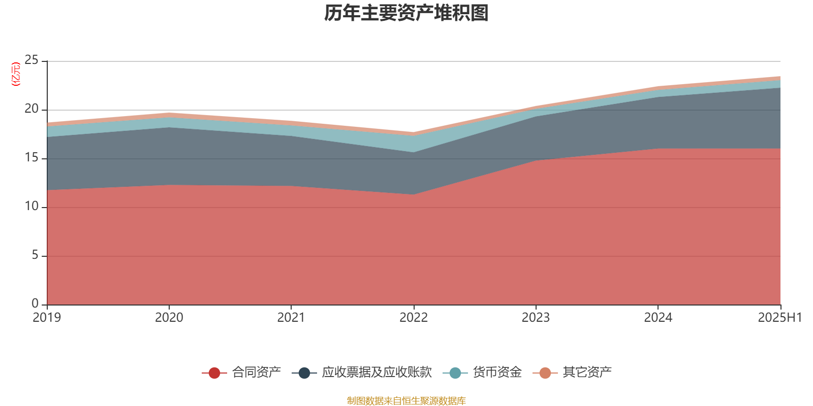 资产重大变化方面,截至2025年上半年,公司合同资产较上期末增加0.04%,占公司总资产比重下降3.1个百分点;应收票据及应收账款较上期末增加18.08%,占公司总资产比重上升3.05个百分点;递延所得税资产较上期末增加29.79%,占公司总资产比重上升0.13个百分点;固定资产较上期末减少3.96%,占公司总资产比重下降0.05个百分点。