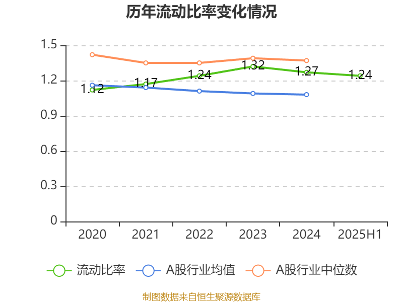 2025年上半年,公司流动比率为1.24,速动比率为1.24。