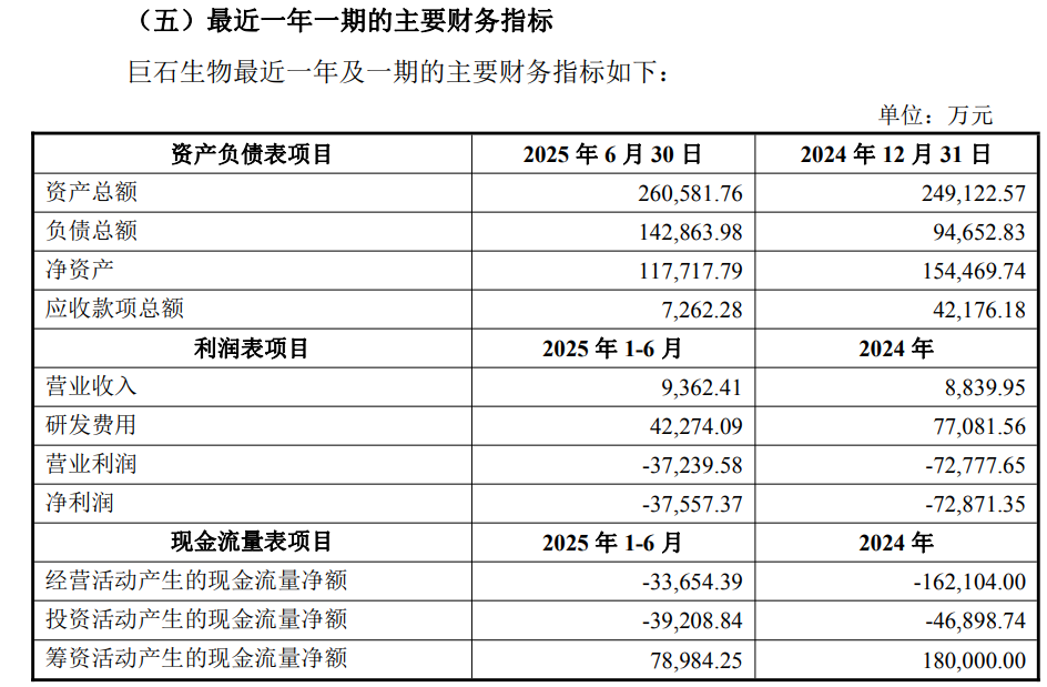 公告显示,收购标的巨石生物尚处亏损阶段,其2024年及2025年上半年分别净亏损7.29亿元、3.76亿元。截至今年6月末,公司净资产11.77亿元。对于巨石生物最近一个会计年度亏损,公告解释说,主要是因为在研管线众多,多款在研产品取得重要进展,研发投入较大。巨石生物以创新为驱动力,持续加大研发投入,2024年和2025年1-6月的研发费用分别为7.7亿元、4.2亿元,恩朗苏拜单抗注射液与注射用奥马珠单抗已在2024年上市,乌司奴单抗注射液已递交上市申请,另有多个项目进入关键临床试验阶段。