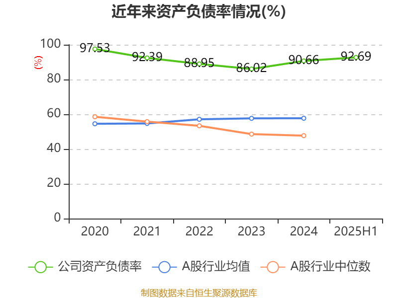 2025年上半年,公司平均净资产收益率为-25.64%,较上年同期下降2.89个百分点。