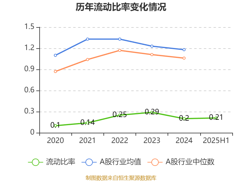 2025年上半年,公司流动比率为0.21,速动比率为0.17。