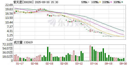从个股表现来看,9月有3300多只个股下跌。其中,最熊股票是紫天退(300280),9月累计暴跌超86%,股价频频创出历史新低。