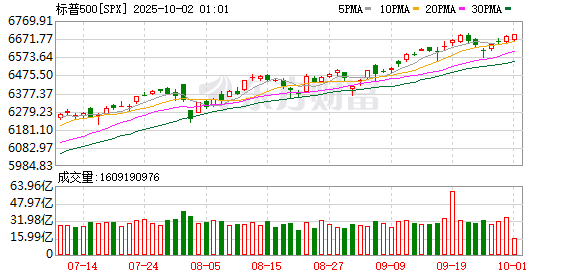 美股市场:美股三大指数09月29日收盘全线上涨。截至收盘,道琼斯工业平均指数比前一交易日上涨68.78点,收于46316.07点,涨幅为0.15%;标准普尔500种股票指数上涨17.51点,收于6661.21点,涨幅为0.26%;纳斯达克综合指数上涨107.08点,收于22591.15点,涨幅为0.48%。
