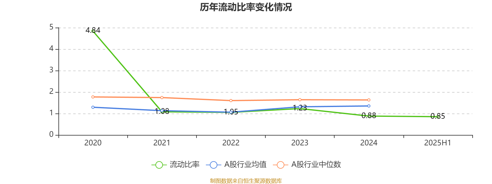 2025年上半年,公司流动比率为0.85。