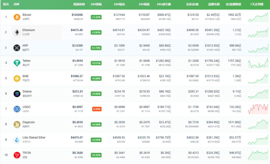 10月3日凌晨,比特币价格突破12万美元大关,24小时涨幅为1.6%。