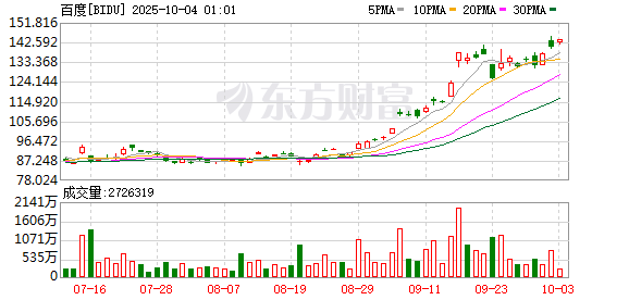 纳斯达克中国金龙指数收涨1.44%,热门中概股普遍上涨,百度、世纪互联涨超4%,京东涨超3%,阿里巴巴涨超2%,哔哩哔哩、小鹏汽车涨超1%。