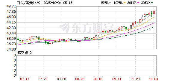 10月2日,伦敦现货白银突破48美元/盎司,创下自2011年以来新高,距离历史最高点仅一步之遥。伦敦现货白银的最高纪录是2011年4月创下的49.84美元/盎司。