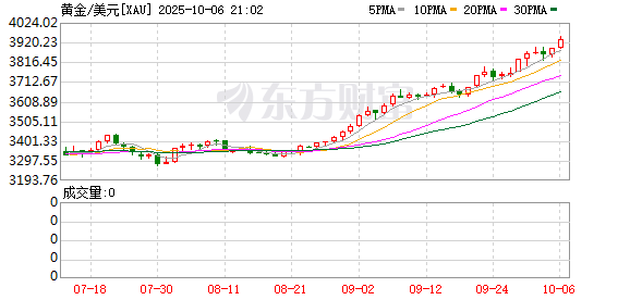 10月6日,现货黄金本周开局维持强势,上破3920美元/盎司关口,再创历史新高!距离首次突破3800美元关口仅不到10天。