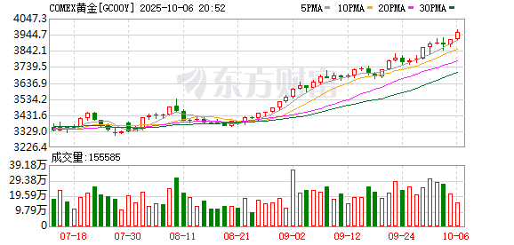 截至发稿,纽约黄金报3937.46美元/盎司,盘中一度涨至3945.20美元/盎司,再创新高。