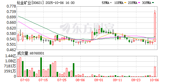除坛金矿业外,中国白银集团也大涨14.29%,珠峰黄金大涨11.84%。紫金矿业涨2.52%,领涨蓝筹。