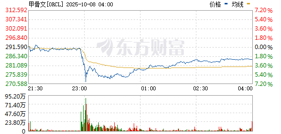 甲骨文公司股价一度跌超7%,为自9月11日以来的最大跌幅。报道称甲骨文因英伟达blackwell租赁业务损失约1亿美元。