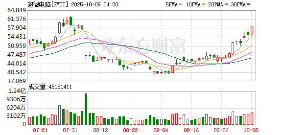 热门科技股普涨,AMD涨超11%,三日累计涨43%,创九年来最佳三日表现,超微电脑涨超6%,英伟达、博通涨超2%,亚马逊、特斯拉涨超1%。