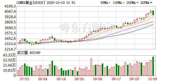 10月7日,国际黄金市场迎来历史性时刻:纽约期金首次触及4000美元/盎司整数大关,日内涨幅0.55%;现货黄金报3976.94美元/盎司,同步创下历史新高。
