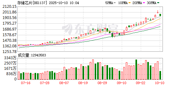 从存储芯片巨头一段时间的股价表现来看,也能感受到存储芯片行业的高景气。比如美国的存储巨头闪迪和美光科技9月以来分别上涨151.34%和65.31%,日本的存储巨头铠侠9月以来股价大涨139.6%。