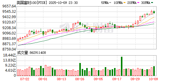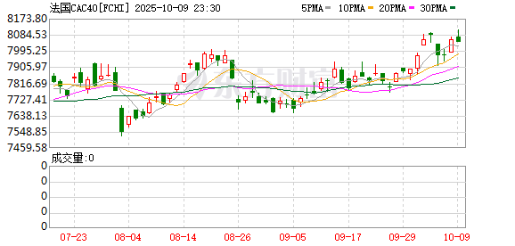 欧股市场:欧洲三大股指10月08日全线上涨。英国伦敦股市《金融时报》100种股票平均价格指数报收于9548.87点,较前一交易日上涨65.29点,涨幅为0.69%;法国巴黎股市CAC40指数报收于8060.13点,较前一交易日上涨85.28点,涨幅为1.07%;德国法兰克福股市DAX指数报收于24597.13点,较前一交易日上涨211.35点,涨幅为0.87%。