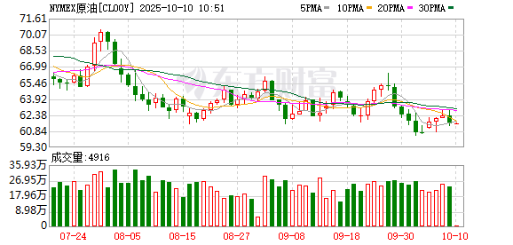 商品市场:国际油价10月08日上涨。截至当天收盘,纽约商品交易所WTI原油期货当月连续合约结算价上涨0.82美元,收于每桶62.55美元,涨幅为1.33%;伦敦布伦特原油期货当月连续合约上涨0.80美元,收于每桶66.25美元,涨幅为1.22%。国际金价突破4000美元大关,现货黄金涨1.44%,报4042.14美元/盎司。COMEX黄金期货当月连续合约上涨66.10美元,涨幅1.65%,报4070.5美元/盎司。