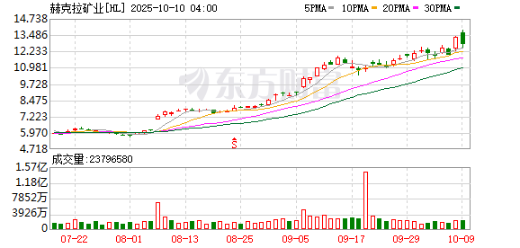国际金价创历史新高,贵金属、金属原材料与采矿涨幅居前,世纪铝业涨超12%,美洲白银公司、赫克拉矿业涨超11%,南方铜业涨超4%。