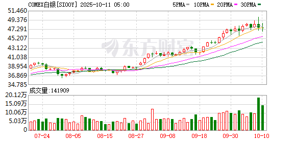 由于以色列和哈马斯达成停火协议,外加黄金投资者获利了结等因素,黄金期货走弱。COMEX黄金期货收跌1.95%,报3991.1美元/盎司,失守4000美元大关,COMEX白银期货收跌2.73%,报47.655美元/盎司。据Wind数据,10月9日伦敦金现下挫1.6%,伦敦银现冲高回落。美股市场,贵金属公司跌幅居前,美国黄金公司、金田跌超7%,泛美白银跌超3%,美洲白银公司跌超2%。