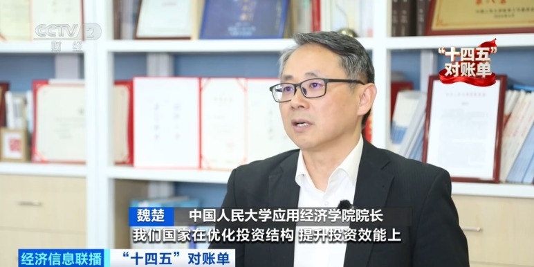 中国人民大学应用经济学院院长魏楚:“十四五”时期国家在优化投资结构、提升投资效能上,实际上是取得了非常关键的一些成果和进展的。2024年高技术产业投资比上年增长了8%,这说明在“十四五”时期整个的投资结构向新的赛道聚焦了。第二,实现了投资增长与民生改善同频共振。很多投资投向了什么?投向了保障性住房、教育医疗、养老服务、公共卫生。第三,引导了更多的民间资本,引导了更多的耐心资本,深度参与我们的投资领域。