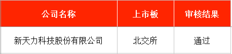发审委审核方面,北交所上周召开新一期上市审核委员会审议会议。9月30日,北交所审议通过了新天力科技股份有限公司(下称“新天力”)的首发事项。