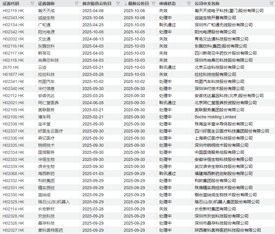 9月28日至10月8日,港股共有32家公司递交招股书。