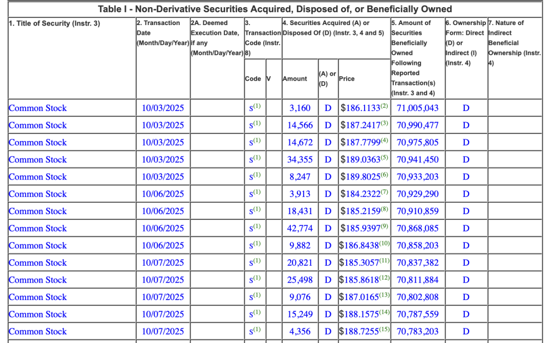 截至2025年10月10日,黄仁勋仍持有超过7060万股英伟达股票。