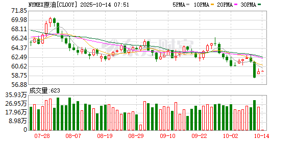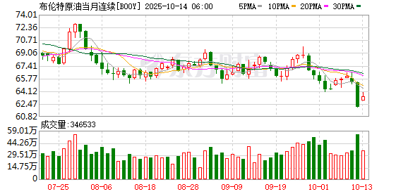 商品市场:国际油价10月13日上涨。截至当天收盘,纽约商品交易所WTI原油期货当月连续合约结算价上涨0.59美元,收于每桶59.49美元,涨幅为1.00%;伦敦布伦特原油期货当月连续合约上涨0.59美元,收于每桶63.32美元,涨幅为0.94%。COMEX黄金期货当月连续合约上涨132.60美元,涨幅3.31%,报4133.0美元/盎司。