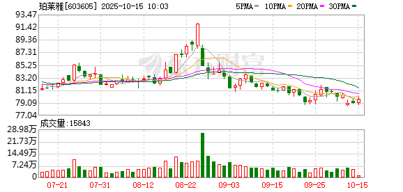 截至10月10日收盘,珀莱雅(603605.SH)报80.36元/股,涨0.34%,今年以来股价跌3.75%。