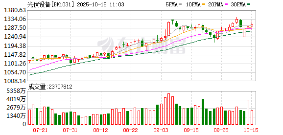 光伏设备板块在10月14日早盘走强,早盘收盘时上涨2.27%。板块中亿晶光电涨停,艾能聚大涨超10%,天合光能、晶澳科技、隆基绿能、通威股份等行业龙头也纷纷涨幅靠前。
