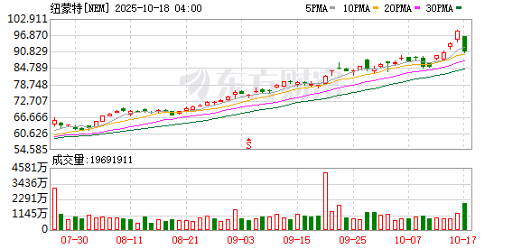 现货黄金续创历史新高,美股黄金概念表现强势,金田涨超6%,纽曼矿业涨超5%,巴里克矿业涨超2%。