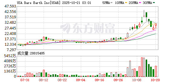 美东时间周五,美股开盘后,相关个股股价继续走低,截至收盘,United States Antimony暴跌超10%,Lithium Americas大跌超8%,USA Rare Earth大跌近3%,Energy Fuels大跌2.9%。