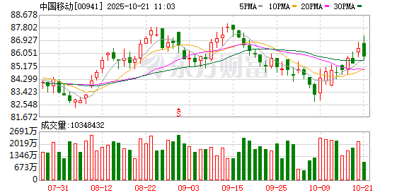 以10月20日收盘价计算,中国移动目前市盈率(TTM)约为16.32倍,市净率(LF)约1.71倍,市销率(TTM)约2.23倍。