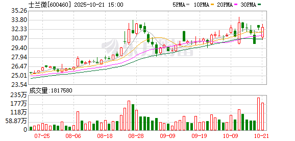 截至10月17日收盘,士兰微最新股价为29.94元/股,总市值为498.2亿元。