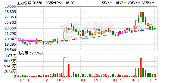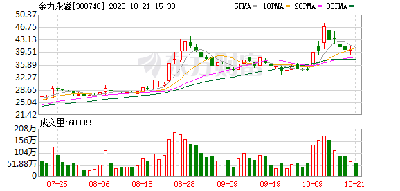 以10月20日收盘价计算,金力永磁目前市盈率(TTM)约为90.51倍,市净率(LF)约7.64倍,市销率(TTM)约7.75倍。