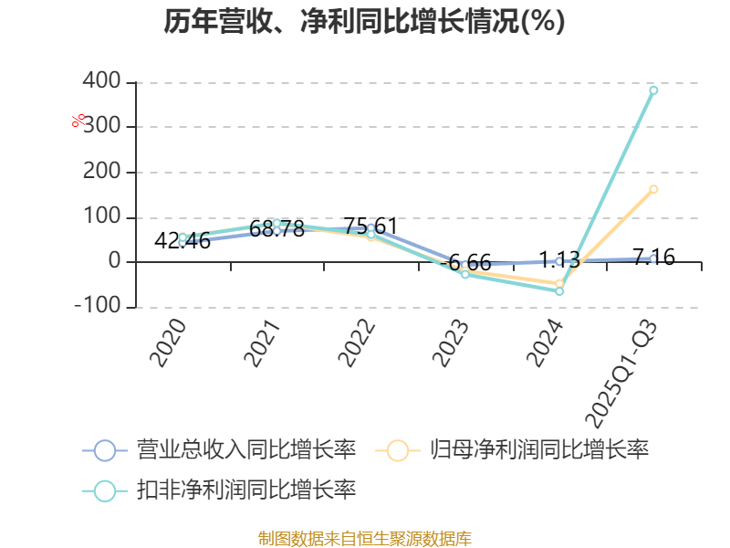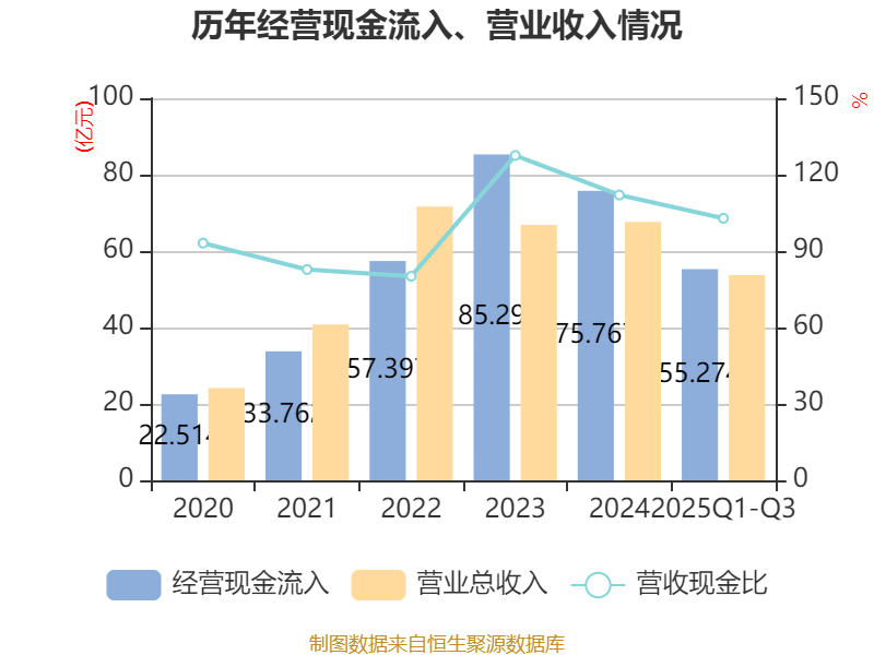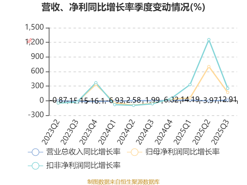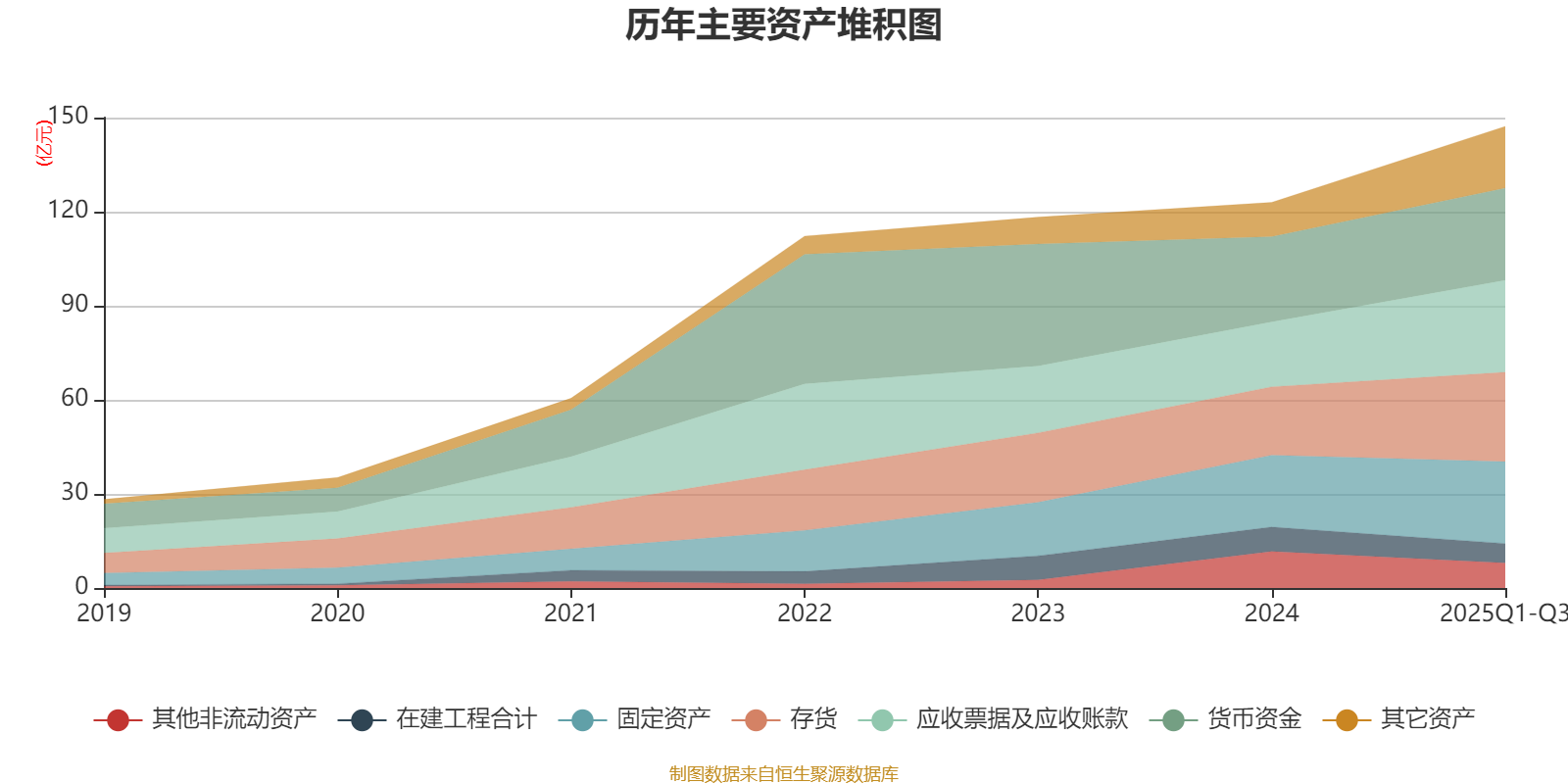 资产重大变化方面,截至2025年三季度末,公司一年内到期的非流动资产较上年末增加6719.88%,占公司总资产比重上升4.57个百分点;其他非流动资产较上年末减少31.79%,占公司总资产比重下降4.08个百分点;应收票据及应收账款较上年末增加41.56%,占公司总资产比重上升3.08个百分点;在建工程合计较上年末减少20.09%,占公司总资产比重下降2.1个百分点。